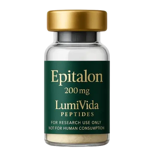 Epithalon is a synthetic peptide derived from the pineal gland peptide epithalamin. Research suggests it can extend telomeres, reduce oxidative stress, and influence lifespan in animal models. It has been widely studied in anti-aging science for its roles in circadian rhythm regulation, immune support, and longevity pathways.
