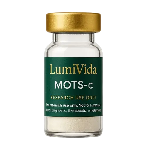 MOTS-c is a mitochondrial-derived peptide that has been studied for its roles in energy regulation, metabolism, and exercise performance. Preclinical models suggest MOTS-c improves insulin sensitivity, enhances exercise capacity, and may play a role in delaying age-related metabolic decline. It is considered a unique bridge between mitochondrial function and systemic energy regulation, making it an exciting peptide in both metabolic and anti-aging research.