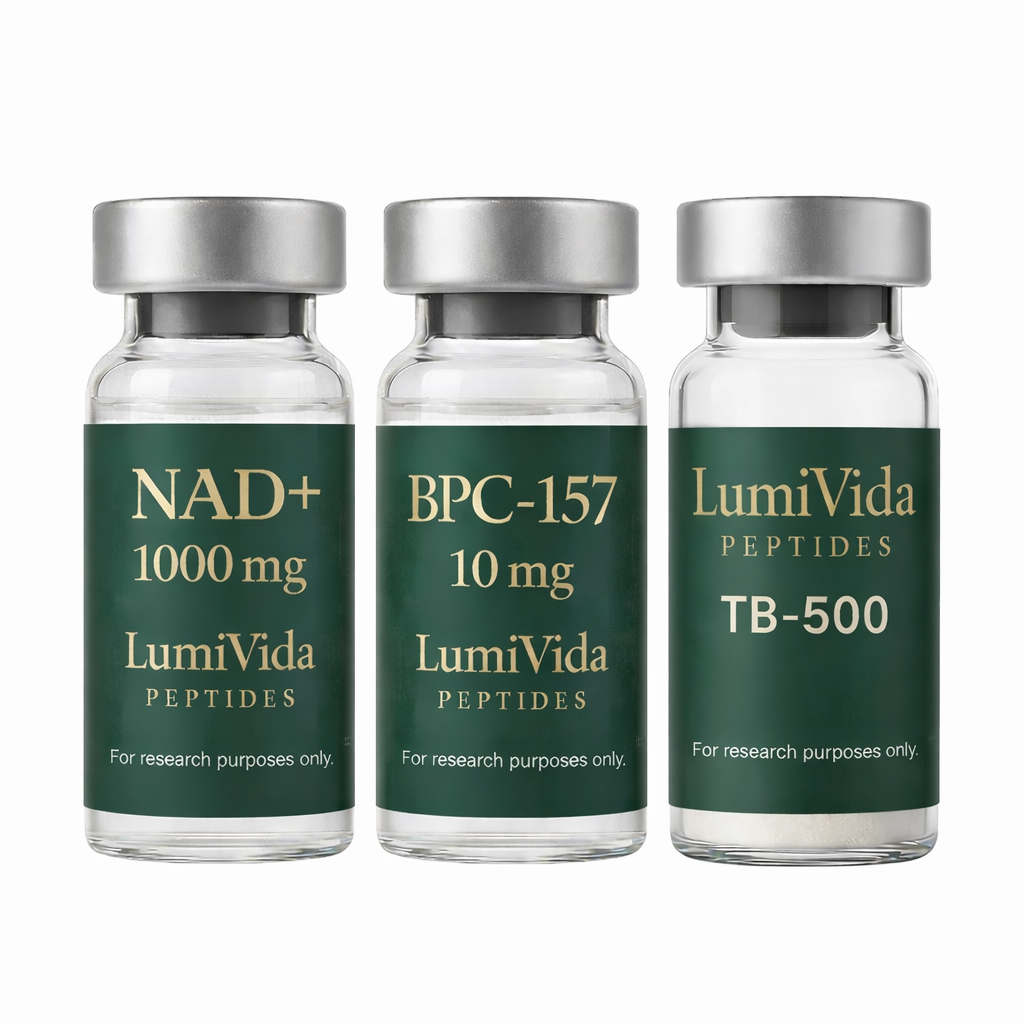 The Wolverine+ stack often referred to as a perfect recovery protocol, combines NAD+, BPC-157, and TB-500, three compounds commonly grouped for their complementary roles in supporting cellular energy processes, tissue-response pathways, and recovery-related mechanisms. Together, they are popular among performance and recovery communities seeking a comprehensive, multi-pathway approach to recovery support and resilience.